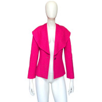 Dior fw1998 galliano pink sprinkle wool blazer coat bar jacket Yr:1998 fall Sz:it42 A beautifully constructed blazer from galliano designs of perfection, resembles the bar jacket a bit with its trimmed waist. Theres a fake top attachment bit that you can remove or wear as part of the jacket. Obviously the mannequin is a bit to small with a usual sizing for it36 so i would recommend a true 40 or even a 42 to max out its structural beauty. Enormous lapels though im not exactly sure how it is to be styled. With sprinkle colour threads all over. Shoulder pads. Classy dior that never goes out of style. Pink floral pattern silk lining that was also featured on the runway as a pyjama suit. Never get tired of looking at this beauty. Mint condition, no defects. Also have a skirt from the same collection so see if you would be interested. Measurements: Shoulders:16” Chest:17” Length:23” Sleeves:23”