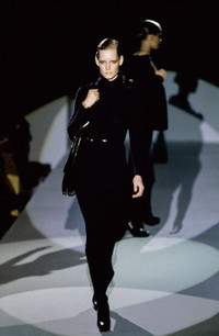 Gucci fw96 tom ford wool/nylon sweater dress Yr:96fw An amazing dress from fw1996 gucci runway. This is from the start of tom fords career at gucci, wit its hyper sexiness and the fashion equivalent of studio 54. This particular dress is the 21st look, showcasing the form fitting and flow of tom fords precision tailoring. The dress is composed of a wool blend turtleneck top and a nylon dress bottom, with a very handy pocket with zippers. The side also zips open for wearing. This piece is extremely rare to come buy and you’ll probably never see another one off the 96runway again. The dress is in immaculate condition, no rips or tears, wool is not really stretched out. Unfortunately the tag was cut. But otherwise perfect. The following measurements are measured for recommended sizing when stretched out. Recommend size s. Measurements: Shoulders:14-15” Chest:15-16” Top length:16” Sleeves:22” Waist:28-29” Hip:32”