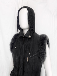 Gucci Fall 1998 Tom Ford Silk Quilted Down Puffer Vest 38 Size: 38 Armpit to armpit: 18” Length: 27” Measurements are measured on one side with garments laid flat (Waists and Hips are doubled) and are provided as a courtesy only- not a guarantee of fit. Mannequin is 33”, 24”,36” for reference Notes: From Fall 1998 Gucci Collection designed by the legendary Tom Ford, presented on the Menswear Collection Runway This is the silk version of the jacket, made with the same cutting The piece was sourced from a former fashion designer, whom redesigned the piece cutting off the sleeves and replaced with fur trims Made from a silk with lots of silver hardware, three zipper pockets and four snappers The quilting design is meant to resemble and enhance the silhouette of the body The collars can be closed to stand up, there’s also a hood hidden behind the collar The piece is quite warm and is perfect for winter weather Fully Lined with Goose Down Filling Made in Italy Composition: 100% Silk Filling: 100% Goose Down Lining: 100% Rayon Condition: 2/5 (Used condition, with signs of use) Defects: There’s wear and tear on the piece, it does contribute to a more punk-ish look We have to the best of our ability showcase all the defects, please inspect carefully before you purchase Price(including shipping): $250