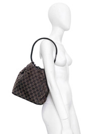 Gucci Fall 1999 Tom Ford Large Brown Monogram Bucket Acrylic Ring Bag Length: 9.5” Depth:4.5” Height: 9” Provided as a courtesy only- not a guarantee of fit. Notes: Available in leather, monogram canvas and velvet in small and large iterations Exquisite handbag from the Gucci Fall/Winter 1999 collection designed by Tom Ford Featured on the runway and campaign, shot by Mario Testino featuring Liisa Winkler This is a larger iteration, compared to ones we have previously acquired Crafted from a very soft leather with a brown Gucci monogram canvas outer Acrylic ring hoop with silver branded plate The interior is lined with soft leather and features a small zip pocket Can be opened or closed fairly easily Can be worn on shoulder or just on the arm Made in Italy Condition: 3/5 (Great condition, minor signs of use) Defects: There’s damages to parts of the bag, hence the reduced price Price(including shipping): $300