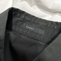 Gucci Fall 2000 Tom Ford Hook Black Shirt Shoulders:17” Chest:18” Length:23” Sleeves:24” Provided as a courtesy only- not a guarantee of fit. Info: From fall 2000 Gucci collection designed by Tom Ford Hook and eye closures on the cuff as well Composition: 100% cotton + Metal parts Condition: 4/5 (Mint condition, little to no signs of use) Defects:N/A Price(including shipping): $250