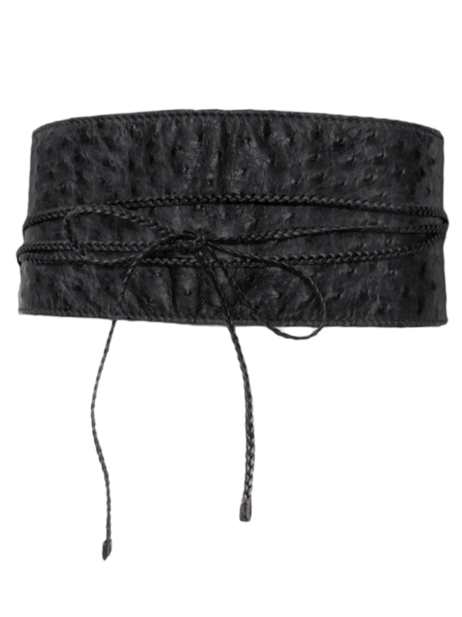 Gucci Fall 2002 Tom Ford Black Ostrich Leather Braided Wrap Obi Belt Size 26 Length: 25” Width: 4” Leather straps (each): 54” Measurements are measured on one side with garments laid flat (Waists and Hips are doubled) and are provided as a courtesy only- not a guarantee of fit. Mannequin is 33”, 24”,36” for reference Notes: From Fall 2002 collection designed by legendary Tom Ford The collection stands out as one of the most characteristic and memorable collections of his tenure, which he embraced an overall black gothic theme mixed with a contemporary chic tone A traditional Japanese inspired Obi belt design made with luxurious soft ostrich leather with long braided leather straps attached, designed to wrapped around the body and can be tied off and styled in several ways The size of this belt is 26, which is designed for the two tips of the belt to touch on the back when worn. It could also be used for other sizes as it is designed to wrap around the waist Made in Italy Composition(outer): 100% Ostrich Leather Condition: 4/5 (Mint condition, little to no signs of use) Defects: Theres a small yellow stain under one of the leather braids, also a light discolouration spot on the inner lining We have to the best of our ability showcase all the defects, please inspect carefully before you purchase Price(including shipping): $800
