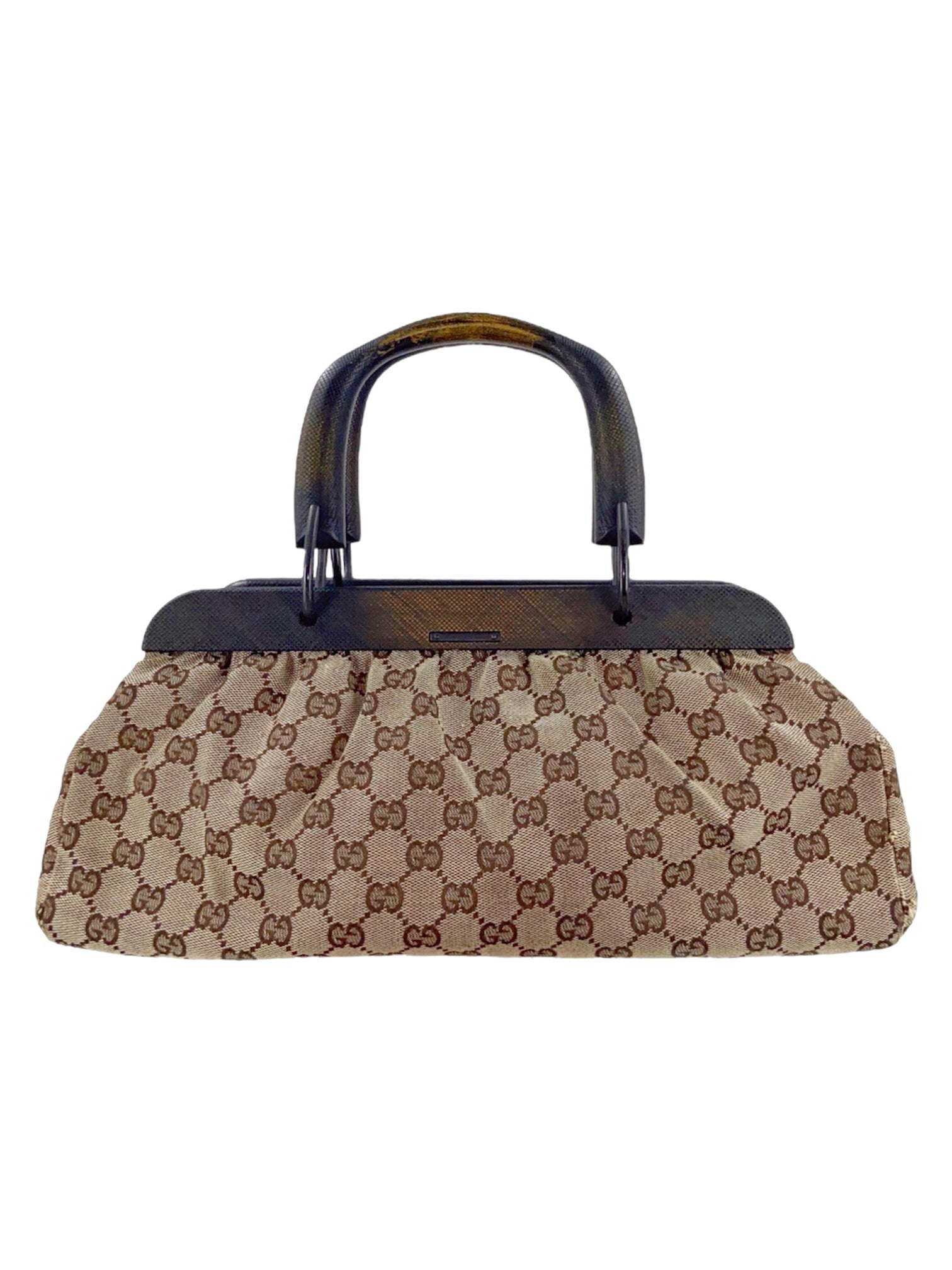 Gucci Fall 2002 Tom Ford Classic Brown Monogram Doctors Bag Height: 17.78 cm (7 in) Width: 33.02 cm (13 in) Depth: 11.43 cm (4.5 in) Handles with rings 14cm Notes: From Fall 2002 collection designed by legendary Tom Ford The collection stands out as one of the most characteristic and memorable collections of his tenure, which he embraced an overall black gothic theme mixed with a contemporary chic tone The bag is the perfect extension on the themes if the collection, named the Doctor’s bag, inspired by the bags that mid-century doctors use, often adorned with wooden handles, Tom Ford revitalised the design and perfectly fused it into the collection The bag is crafted with a classic, brown monogram canvas with wooden handles and leather flap with buckle closure Fully lined with brown canvas with one zip pocket against the back Condition: 3.5/5 (Mint condition, little to no signs of use) Defects: Wear on sides of the bag as shown Price(including shipping): $350