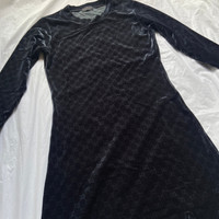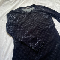 Gucci fw97 TOM FORD navy velvet monogram midi dress Yr: 97fw A legendary dress by the one and only TOM FORD, an exquisite dress with shiny velvet material, with the classic Gucci monogram all over the dress. Very comfortable and breathable material with trimmed waist. Overall in great condition, no defects except some minor folding marks. The item is produced by an alternative company, Gilmar, a long-established luxury fashion goods production company specialising in knitwear. Although not by the usual Zamasport, the material and construction of the dress is more than decent and on par with the usual Gucci merchandise, so I would incline to believe this is authentic or at least officially commissioned by Gucci. Measurements: Shoulders: 15" Chest:16" length:35" sleeves:27"