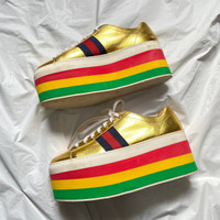 Gucci Peggy rainbow gold platform ace sneaker 38