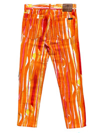 Gucci Spring 1996 Tom Ford Men’s Orange Psychedelic Print Denim Jeans Pants 46 Size: 46 Waist: 33” Front rise: 9.5” Inseam: 29” Thigh: 10.5” Leg opening: 6.5/13” Measurements are measured on one side with garments laid flat (Waists and Hips are doubled) and are provided as a courtesy only- not a guarantee of fit. Notes: From Spring 1996 Gucci collection, designed by the one and only Tom Ford Featuring the famous psychedelic print from the collection, this particular pair is from the menswear collection, in which it was shown in a blue colourway. Also shown in the campaign shoot of the collection shot by Steven Miesel With five pockets, front button and zip closure The pair is in immaculate condition, except for a small stain on the left knee, which is not apparent when worn Made in Italy Composition: 100% Cotton Condition: 4/5 (Mint condition, little to no signs of use) Defects: There’s a minor stain on the left knee, not significant We have to the best of our ability showcase the defect, please inspect carefully before you purchase Price(including shipping): $600