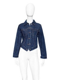 Gucci Spring 1998 Tom Ford Esther Canadas Look#32 Raw Denim Jacket 40 Size: 40 Shoulder: 16.5” Armpit to armpit: 18” Length: 19” Sleeves: 22” Measurements are measured on one side with garments laid flat unstretched (Waists and Hips are doubled) and are provided as a courtesy only- not a guarantee of fit. Mannequin is 33”, 24”,36” for reference From Spring 1998 Gucci Collection, designed by the one and only Tom Ford The one denim jacket that started it all, since this collection Tom Ford has designed and issued denim jackets every season for Gucci and accumulated over 30+ designs over his tenure Also featured on the very iconic campaign shoot of the season by Mario Testino modelled by Erin Cummings Modelled by Esther Canadas for the #32 look, one of the most iconic and attitude-defining looks of the seasonh There are often listings online that claim that they have this particular jacket from this season, we would like to point out some exclusive features of this jacket, double French seams on the chest inspired by the Levis Type III jacket that is slightly curved to accentuate the feminine curves, petite chest pockets with no flaps, and a clean black design with waist cinches. And most importantly, the front panels are designed curved as well so that only the third button should be buttoned to close the jacket Detailed with orange contrasting seams and Gucci branded jean buttons The jacket uses premium indigo dyed denim fabric made from 100% cotton, made with the intent of adding stiffness to the jacket Made in Italy We also have an identical jacket in sz 42, comparatively this has a more washed feel Composition: 100% Cotton Condition: 4/5 (Mint condition, little to no signs of use) Defects: discolouration on the neckline We have to the best of our ability showcase all the defects, please inspect carefully before you purchase Price(including shipping): $800