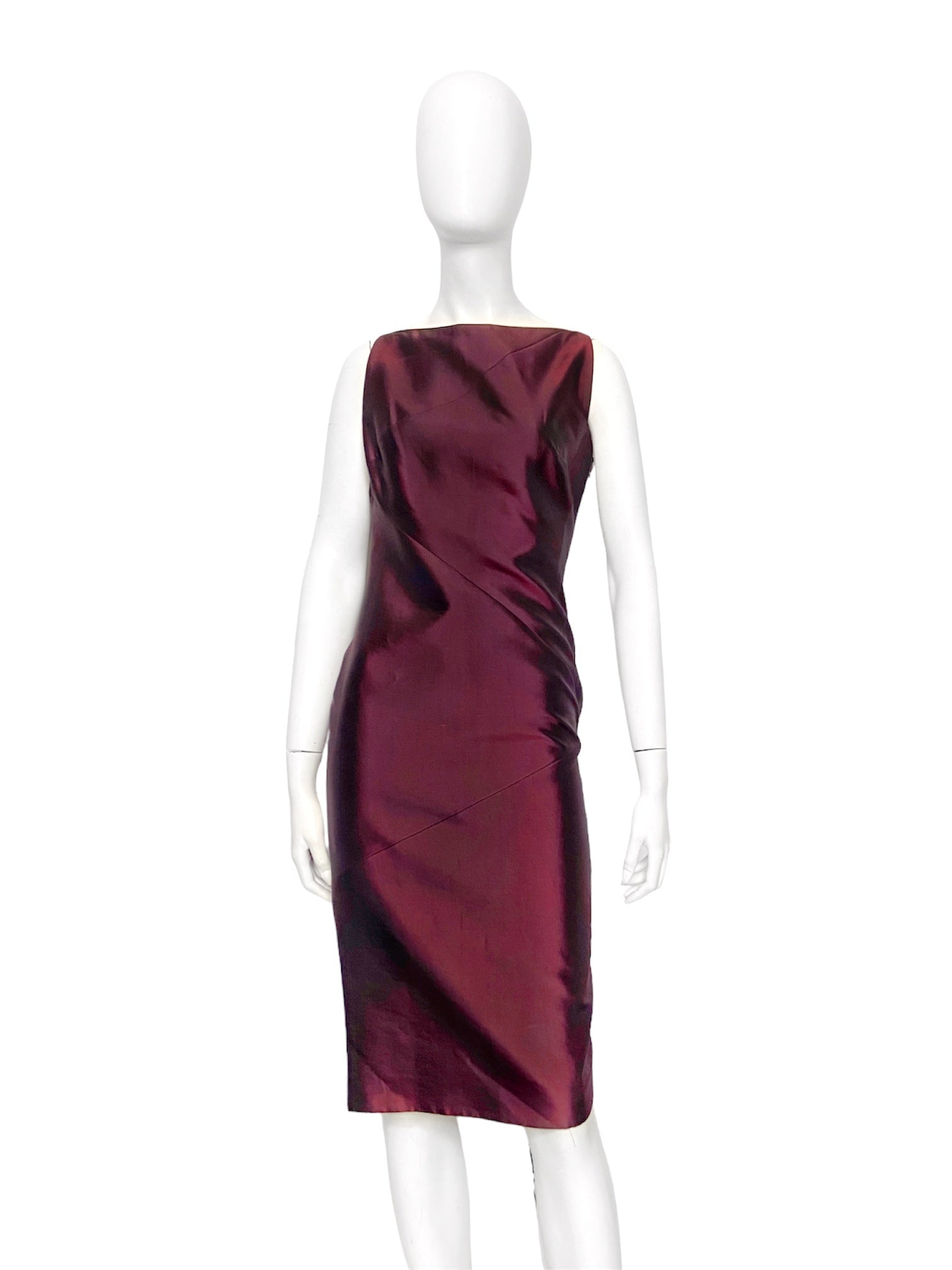 Gucci Spring 1998 Tom Ford Red Satin Pencil Dress Size: 38 Bust: 34" Waist: 27" Hips: 35" Shoulder to hem: 38" Measurements are measured on one side with garments laid flat (Waists and Hips are doubled) and are provided as a courtesy only- not a guarantee of fit. Mannequin is 33”, 24”,36” for reference Notes: From Spring 1998 Gucci collection designed by the one and only Tom Ford The dress was presented on the runway in a black colour way, there is also a ice blue version worn by Anna Wintour in an iconic photo with André Leon Talley The dress also appeared in the March 1998 issue of American Vogue, captured by Steven Meisel The same design was also used to create Helen Hunt's iconic 1998 Oscars gown The dress features a wide neckline, pinched at the top of the shoulder. The dress is made complete with a hem that zig-zags across the dress and a small slit at the back The dress is made from acetate silk blend, fully lined with a burgundy monogrammed rayon fabric Made in Italy The dress has quite a tight fit so we recommend it for skinnier figures Composition: 80% Acetate + 20% Silk Lining: 100% Rayon Condition: 4/5 (Mint condition, little to no signs of use) Defects: There’s fraying at the right shoulder and some creases on the dress We have to the best of our ability showcase all the defects, please inspect carefully before you purchase Price(including shipping): $700