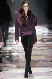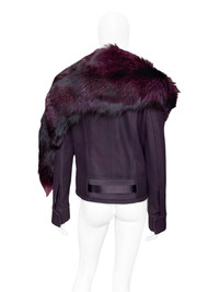 STATEMENT Gucci Fall 2004 Tom Ford Purple Fox Fur Stole Collar Wool Cashmere Coat Jacket 42 Size: 42 Shoulder: 17.5” Armpit to armpit: 20” Length: 25.5” Sleeves: 26” Measurements are measured on one side with garments laid flat unstretched (Waists and Hips are doubled) and are provided as a courtesy only- not a guarantee of fit. Mannequin is 33”, 24”,36” for reference Notes: From Fall 2004 Gucci collection, designed by the one and only Tom Ford as his final collection for the house A true statement piece from the collection, featuring a fox fur stole/collar on a purple wool cashmere blend jacket with a signature satin striped belt and snappers closure The fur part is attached by several buttons, The belt features the signature satin striped fabric, inspired by the webbing design found in halters in horse-riding gear which usually bear a striped design, layered on top of a leather body with velcro closure, it is possible to remove the belt Two external side pockets Fully lined with interlocking GG branded rayon lining, the stole is also lined with matching fabric Made in Italy Composition: 90% Wool + 10% Cashmere Lining: 100% Rayon Stole: 100% Fox Fur Condition: 4/5 (Mint condition, little to no signs of use) Defects: There is a small snag on the back of the satin belt We have to the best of our ability showcase all the defects, please inspect carefully before you purchase Price(including shipping): $3000