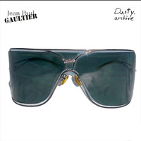 Jean paul Gaultier 90s shield sunglasses Sz:os Amazing pair of sunglasses from jpg’s 90s work. Used condition slight green spots on the arms. May have a few spots on the lens but hardly noticeable afterall this is a used item. With og leather case