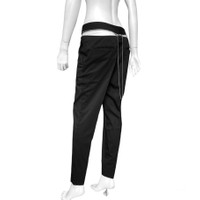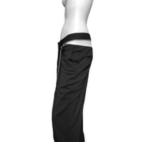 Jean paul gaultier bumster chain zipper pants Sz:44 A pair of subtle yet wildly controversial pair of pants. Its zipper mechanism can transform these into some sexy bumster pants, funny how both les enfants terribles are so fond of this design, a unisex size, i would recommend a more voluptuous figure to max the sexyness of the pants. Of course theres a bunch of ways to play around with the zipper and chain, but imo the bumster feature takes it. Measurements: Waist:31-33” Front rise:13” Inseam:27” Leg opening:6”