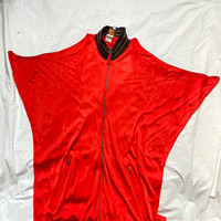 Jean Paul Gaultier fall 2007 red bomber zip dress Yr: fall 2007 Sz:XS A beautiful jumpsuit like dress from Gaultier, with that Parisian chic of a bomber being made into a dress, cut sleeves. A rayon reflective material is very light with a smooth texture, with pockets with zips. Lots of ways to style this piece. Mint condition, no signs of use. Measurements:(unstretched) Chest:33” Length:35” $350