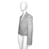 Jean Paul Gaultier fw13 grey wool pin closure cropped blazer 46 Yr:fw13 Sz:46 A beautiful double breasted wrap blazer with pin closure, lushly wool material that keeps you quite warm. Pin piercing closure, easy to open. Mint condition, presumably unworn Measurements: Shoulders:17” Chest:19” Length:25” Sleeves:26”