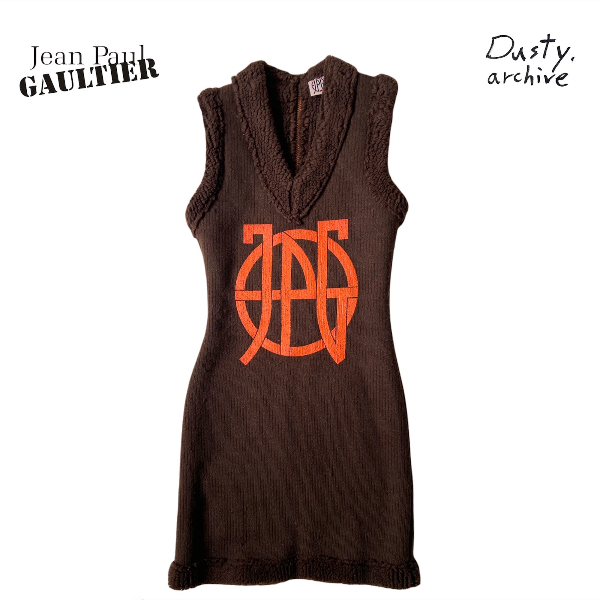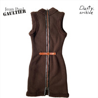 Jean paul gaultier fw1994 runway logo painted tank knee dress Yr:1994fw Sz:s From the jpg runway with bjork, jpg logo fur dress used as layering. One hell of an archive piece. Super comfy and warm! Full back zip with calf leather belt for tightening. Stretchy material. Measurements: Shoulders: 14” Chest:15” Length:37” Hip:18.5”
