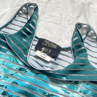 Jean Paul Gaultier see-through mesh striped floral velvet tank top M BWNT Sz:M Lovely top as always from Jean Paul Gaultier in a mint green colourway with see through mesh and striped velvet with floral prints. Pretty crazy. Brand new never worn. No defects. Measurements:(unstretched) Chest:14” Length:22” $200