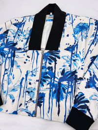 Jean Paul Gaultier Spring 2015 Blue Floral Cropped Bomber 40 Size: 40 Shoulder: 16” Armpit to armpit: 19” Length: 20” Sleeves: 20” Measurements are measured on one side with garments laid flat (Waists and Hips are doubled) and are provided as a courtesy only- not a guarantee of fit. Mannequin is 33”, 24”,36” for reference Notes: From Spring 2015 collection designed by Jeans Paul Gaultier Bomber jacket with cropped cut Made in Italy Composition: 97% Cotton + 3% Elastane Condition: 4/5 (Mint condition, little to no signs of use) Defects: There’s some minor stain on the left sleeve and minor yellowing We have to the best of our ability showcase all the defects, please inspect carefully before you purchase Price(including shipping): $250