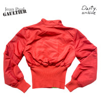 Jean Paul Gaultier ss95 “safe sex” red corset cropped bomber