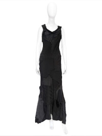 Junya Watanabe Fall 2002 Masterpiece Patchwork Mermaid Maxi Dress Size: S Chest:33” Length:55” Measurements are measured on one side with garments laid flat (Waists and Hips are doubled) and are provided as a courtesy only- not a guarantee of fit. Notes: From Fall 2002 collection, from the prodigy of Rei Kawakubo, Junya Watanabe presented one of his most critically acclaimed collection Continuing the themes of Spring 2002, where themes of deconstruction and reconstruction are now experimented in gothic tones The collection featured various reconstructed pieces made of numerous fabrics, including velvet and wool, on crop jackets and slip dresses. While there were beautiful distressed blazers and flirtatious slip dresses with holes, this particular dress stood out as the highlight of the season The dress impeccably melds Watanabe's deep appreciation for punk culture with his meticulous focus on tailoring. Despite being crafted from separate pieces of scrap-like fabric, the tailoring of the dress flawlessly hugs and accentuates the curves of the body, creating a captivating mermaid silhouette that gracefully sways with each step This dress was highly sought after and was reissued in the ss19 Junya collection, we recommend watching a video of that runway to understand the shape and movement of the garment A dress from the same collection was worn by Irina Shayk to a Fenty event, which shares a similar design The dress is in immaculate condition, with no sign of use Made in Japan Composition: 40% Wool + 33% Rayon + 14% Polyester + 13% Acrylic Condition: 4.5/5 (Mint condition, little to no signs of use) Defects: N/A Price(including shipping): $ 2500