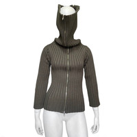 Maison Martin Margiela Fall 1998 'Flat' Collection Green Envelope Knit Jacket Sz:S We also have a "Flat" tank top avaliable. From one of Martin's most known collections, the 2nd collection in the 'Flat' series which in order to further focus on the clothes, abandons the runway format and substitutes models with marionettes made by @jane_how to present the collection. Notably the marionettes were wrapped in plastic, which is most likely a callback to his fall 1988 show, and the over errie feeling of the presentation. This particular piece is called an "Envelop knit", official documentation explains" Knitted squares in different weights have two slits as armholes. Long zips once closed, allow that these squares become close fitting jackets with large collars. The piece is featured as both a top and a skirt in the runway presentation. These pieces are as rare as they come, especially in such impeccable condition.