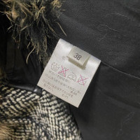Burberry fur tweed coat Sz38 The coat is super delicately made, with what I assume to be fox fur around its opening, collar, sleeves and pockets. With faux leather straps and inner lining to keep warm. Diagonal Tweed pattern is a burberry classic and so is the piece. Mid-length and mid -sleeves. Measurements: Length:40“ Shooulders:17” Pit to pit: 18“ Sleeves 17”