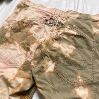 W< acid-dyed shorts Sz:30 Some great W< pants with a beautiful splash acid wash. These are around knee length. With a wax logo print on the back and a W< fan print logo in the inner pocket. Lightning logo stitiching on the back pockets and leg openings stitches that can be cut for more leg room. In mint condition. Measurements: Waist:32” Inseam: 19” Front rise:10.5 Leg opening: 7.5”