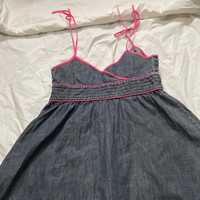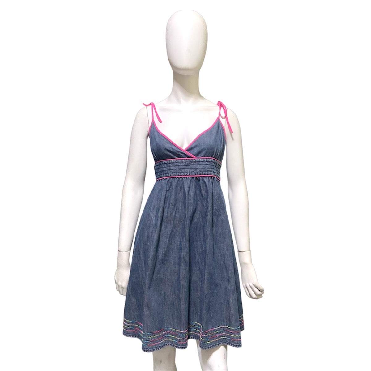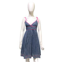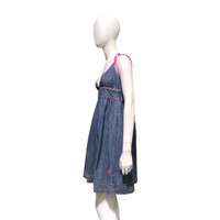 W< denim dress M A cute little dress with some colourful stitching detail and a pink lightening logo. Light denim material so can be worn for all seasons. Mint condition. Measurements: Chest:18” Length:32”