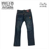 W< jeans Sz:25” Simple. W< with the iconic lightening. Contrast stitchings. Measurements: Waist:28” Inseam: 28” Front rise: 9” Leg opening:6”