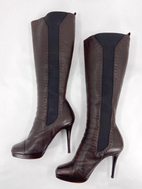 Yves Saint Laurent Rive Gauche Tom Ford Shearling Brown Heeled Stiletto Long Boots 37.5 Size: 37.5 Notes: Long boots from the Yves Saint Laurent Rive Gauche during its Tom Ford era Stiletto heel with shearing leather lining Long elastic side that resembles a “Y” Made in Italy Condition: 4/5 (Mint condition, little to no signs of use) Defects: N/A Price(including shipping): $500