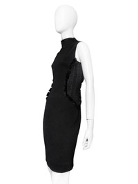 Gianni Versace Fall 1999 Donatella Mink Fur Trim Wool Stretch Dress 38