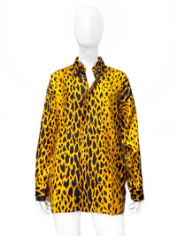 Gianni Versace Spring 1992 Men’s Leopard Print Silk Shirt 44 Size: 44 Shoulder: 24” Armpit to armpit: 24.5” Length: 31” Sleeves: 21.5 Measurements are measured on one side with garments laid flat (Waists and Hips are doubled) and are provided as a courtesy only- not a guarantee of fit. Notes: From Spring 1992 collection designed by Gianni Versace From the menswear collection of the season, one of Gianni Versace’s famous graphic silk shirts that sports the seasonal leopard print Oversized boxy fit with a hidden button down collar Made in Italy Composition: 100% Silk Condition: 3.5/5 (Great condition, minor signs of use) Defects: A small stain on the left chest, not significant Price(including shipping): $1000