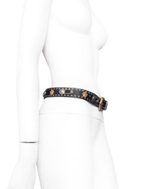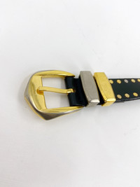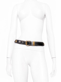 Gianni Versace Spring 1994 Men’s Safety Pin Leather Embellished Belt 30 Size: 80cm/32” Notes: Iconic belt from Spring 1994 Safety Pin Collection, this is from the men’s collection but of course unisex Leather body with silver pins, gold Versace Medusa and mix of silver and gold studs embellishments Adjustable waist, with a large gold buckle Marked size 32”/80cm, with four original holes and one that was done by the original owner at 27”, the rest would fit 29”-32” Made in Italy Condition: 4/5 (Mint condition, little to no signs of use) Defects: Small stain on the back of the buckle We have to the best of our ability showcase all the defects, please inspect carefully before you purchase Price(including shipping): $800