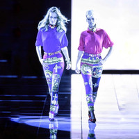 Versace fw91 le madonne cross gothic trompe l'oeil jeans sz:40 30 years old, kept in super good condition. These are from one of the best Gianni Versace collections ever made, with a focus on gothic imagery and the crystal jewel based couture accessories, it has been hailed as one of the most influential collection and a staple of the early 90s era. There are very few pairs still in circulation as these are highly sort after collector's pieces. Super versatile design, you can pair it as Miley just this month, or with an equally graphics heavy top, with tromp l'oeil jewellery prints and le Madonna (Holy Mother) paintings featured with various catholic accessories. This is a mainline issue, although having the Versace jeans couture metal table, size 40 tts. See measurements. Meausrements: Waist:28" Front rise: 13" Inseam:28" Leg opening:5"