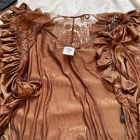 Vetements fw19 demna metallic brown floral ruffles lace robe dress Part of Vetements charm is you never know what they are offering next. This elegant robe is from the fw19 collectoon, featured on the runway as a dress in a pink colourway. This is a in my mind more mature iteration of the piece, with floral lace all over and ruffles all over. Delicately made with lots of small detailing, and it kinda flows around as you walk with its light material. Size xs fit os pretty much anyone. String belt or a button to close the robe. Mint condition, never actually worn. You would need to iron it if you want it to be silky smooth. Measurements: Shoulders:17” Chest:19” Length:45” Sleeves:19”