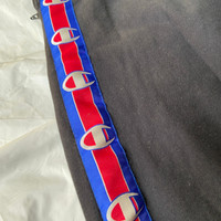 Vetements x champion tape sweatpants shorts with back slit Yr:ss17 Sz:l Shorts with back slit. Great condition. Long bulky silhouette. Fits tts. Side pockets with zip. Measurements: Waist:31-35” Front rise: 15” Inseam:15” Leg opening:12”