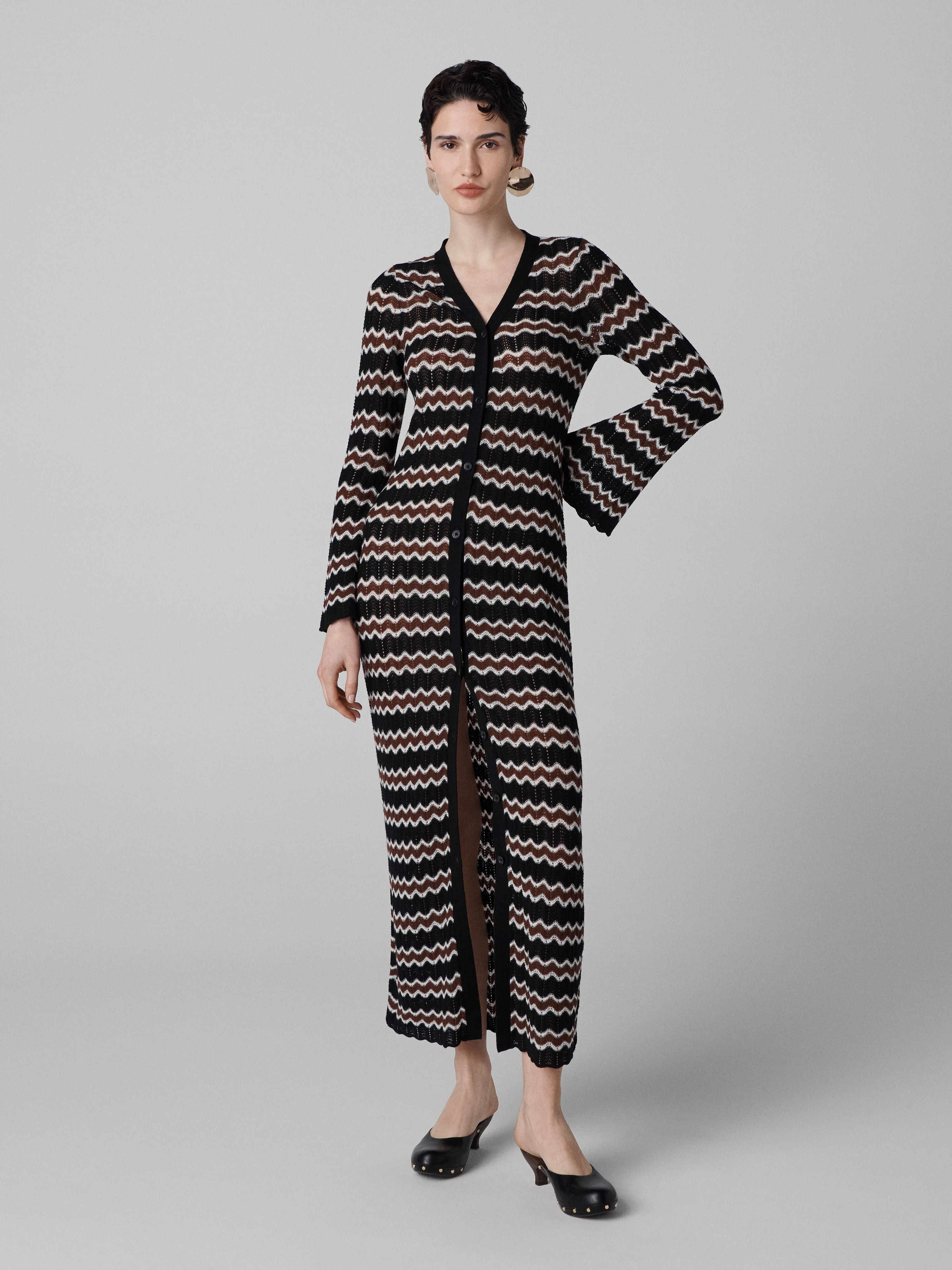 Made from 100% Merino wool, the Alice Long Cardigan has an ultra-soft, luxurious feel. - Deep V-neckline - Long sleeves - Buttons up the front - Scalloped detail on the sleeves and hem - Long length Size & Fit Tatia is 5'11" and wearing a size XS Fabric & Care 100% Extra fine Merino Wool