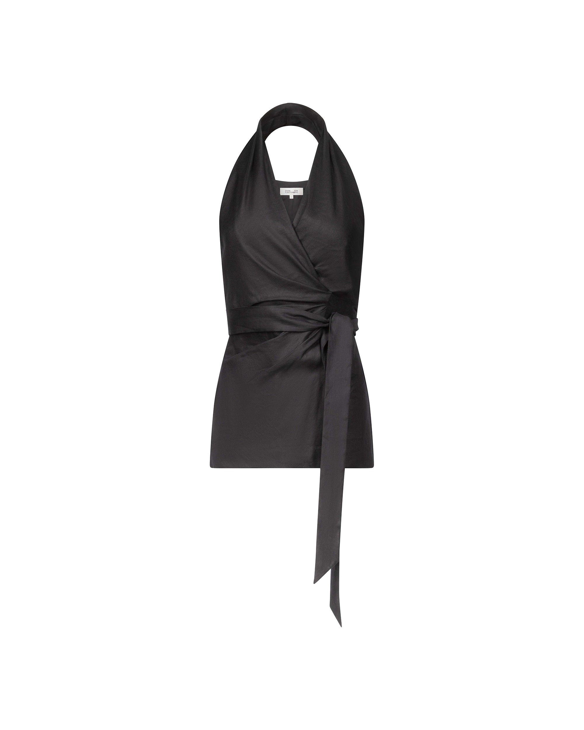 Made from a soft linen, the sleeveless Alyssa Wrap Top has a halterneck and an open back. - Halterneck - Open back - Matching waist-defining tie - Falls below the hips - Pairs perfectly with our Calliope Pants Size & Fit Tatia is 5'11" and wearing a size XS Fabric & Care Stretch Linen, our new natural fabric, has a light, luxurious feel, and a subtly structured look. 55% Linen 43% Tencel Lyocell 2% Spandex