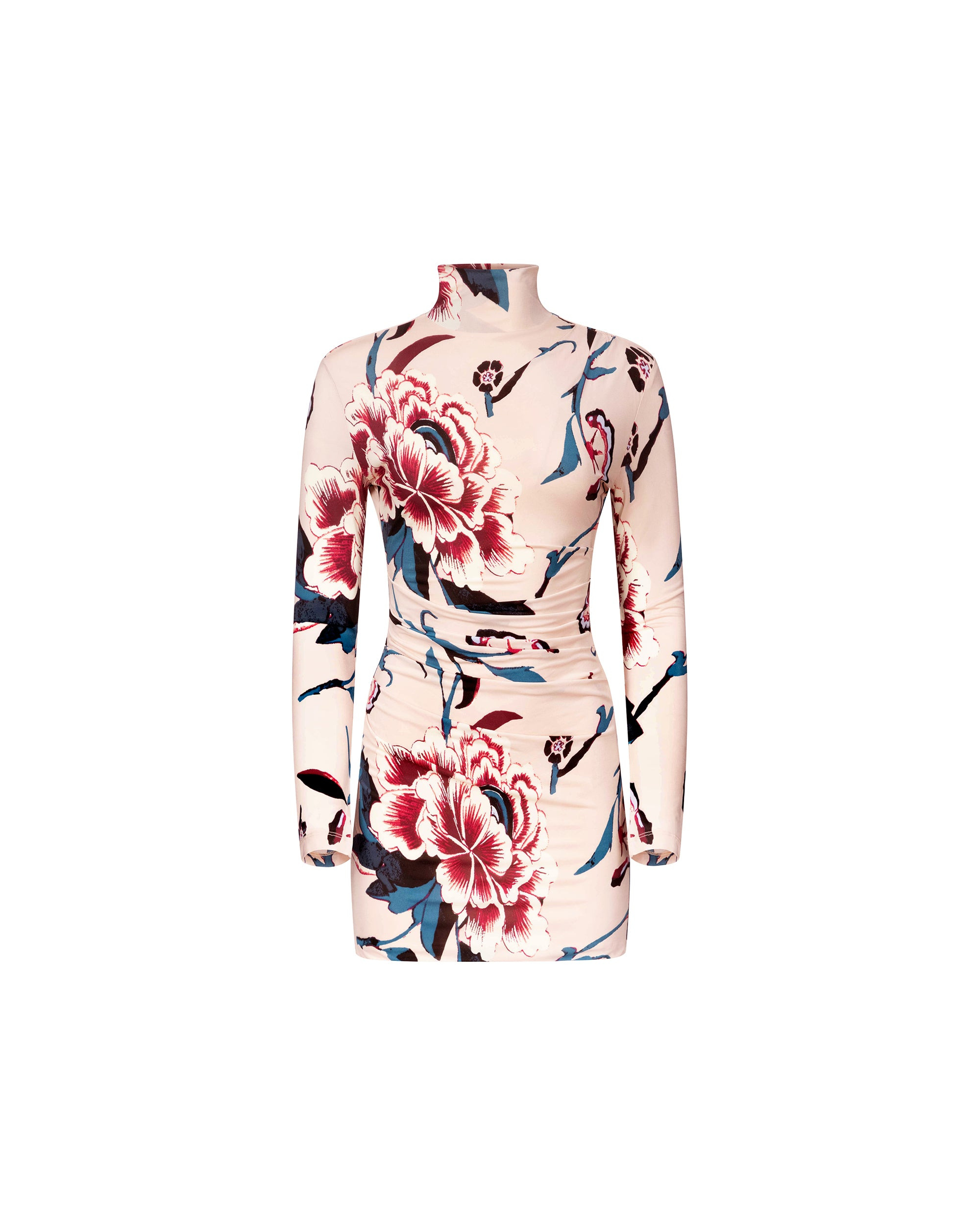 The Amy Dress is a sleek mini made from smooth jersey with a bold floral print for a modern, stylish look. - Turtleneck - Long sleeves - Close fit - True mini length - Can be worn as a tunic top atop of our matching Diane pant Size & Fit Isha is 5'10" and is wearing a size XS Fabric & Care A soft, smooth jersey with a clean finish that takes well to bright, bold prints. 100% Viscose