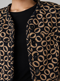 Our Andrea Jacket, crafted from our signature knit jacquard, pairs a cropped silhouette with a bold print for effortless throw-on chic. - Collarless crew neckline - Long sleeve - Button closure - Cropped length - Pair with our Kinsley Knit Shorts Size & Fit Anais is 5'10" and is wearing a size XS Fabric & Care A knit detailed with woven prints that give it a textured feel and an elevated look. 49.8% Polyester 47.6% Cotton 1.5% Spandex Dry Clean Only