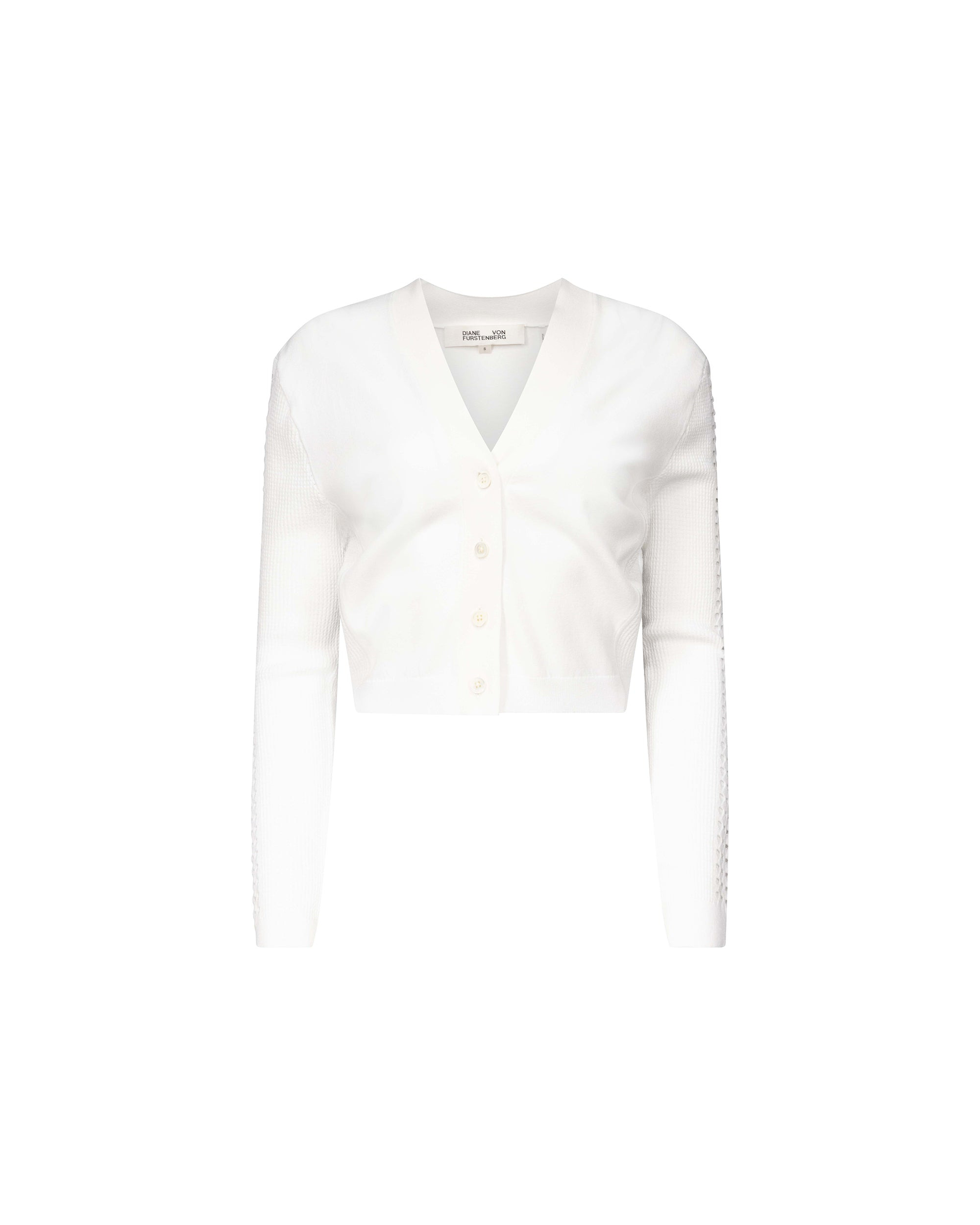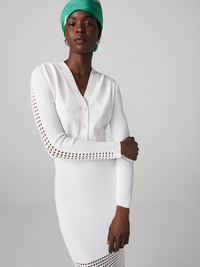 A soft knit piece, the Ashley Cardigan is a classic shape with modern details. - V-neckline - Buttons up the front - Long sleeves with ribbed and eyelet detail - Cropped length Size & Fit Isha is 5'10" and is wearing a size XS Fabric & Care This luxurious viscose blend is a soft and breathable fabric with slight stretch. 100% Viscose blend