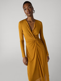The Beatrice Dress features a soft, slinky silhouette and a romantic knotted waist. - V neckline - Long sleeve - Midi length - Close fit bodice - Drapey skirt - Waist knot gathering Size & Fit Naki is 5'11" and is wearing a size XS Fabric & Care An ultra-light and stretchy evolution of our tissue jersey that creates soft, slinky silhouettes. 100% Viscose