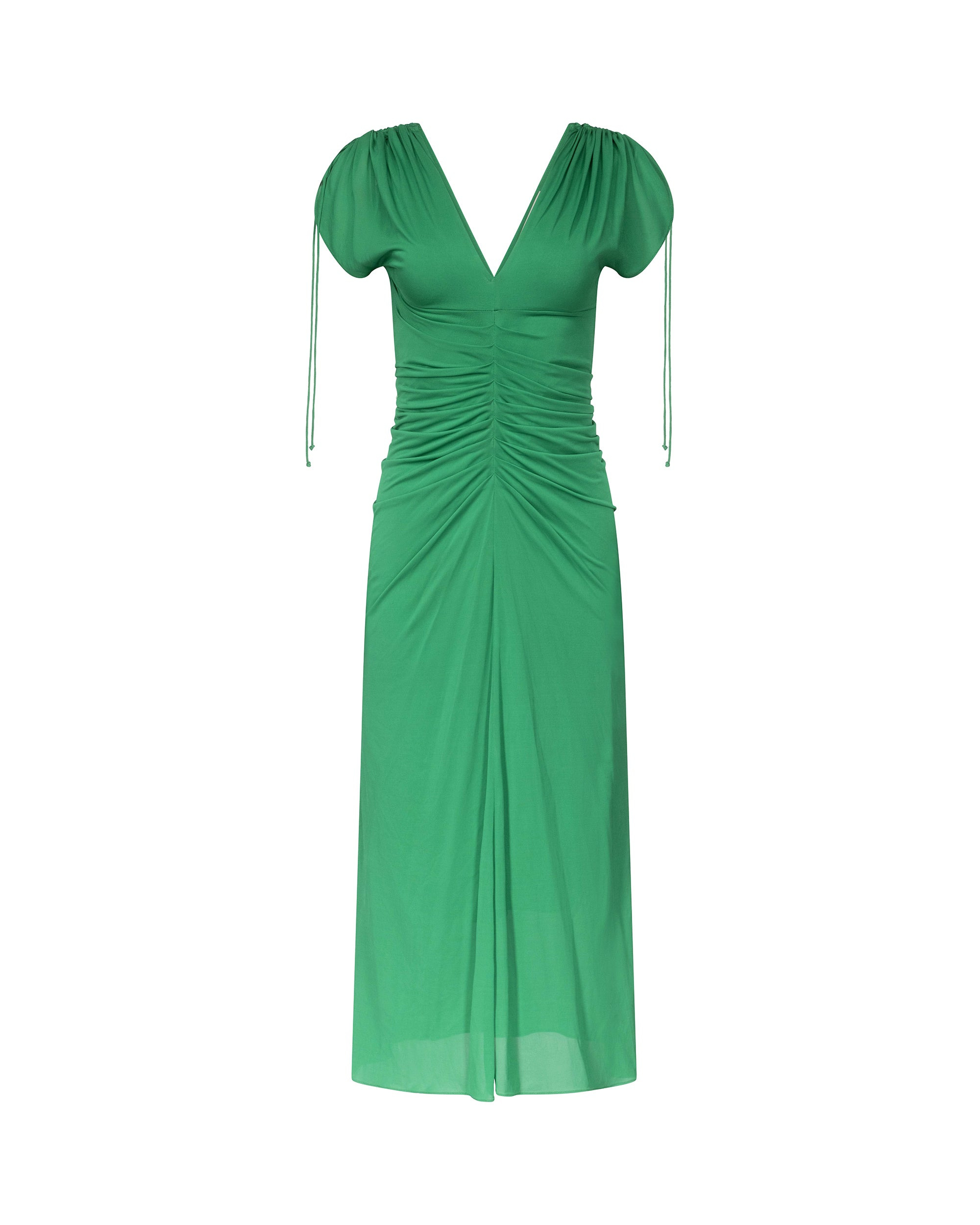 Made from a soft and stretchy mesh, the Charlotte Midi Dress has a close fit and a comfortable feel. - V-neckline - Low V back - Short capped sleeves with drawstring tie detail - Cinched, ruched back and waist - Lettuce hem - Falls around the midcalf Size & Fit Tatia is 5'11" and is wearing a size XS Fabric & Care Our signature mesh is soft and stretchy, perfect for creating silhouettes with a close fit. If you prefer a tighter fit, consider sizing down, as our mesh has extra stretch for extra comfort. 100% Nylon