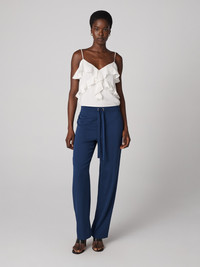 Straight from Diane's suitcase. Cut from a soft, silk georgette, the Diane pants carry her effortless essence. - Stretch waistband - String tie for a cinched custom fit - Straight leg - Create a matching look with the Diane top Size & Fit Isha is 5'10" and wearing a size XS Fabric & Care Silk Georgette is a ultra light and soft, this fabric has a delicate drape and a romantic feel. 95% Silk 5% Spandex