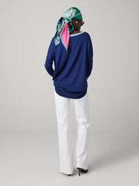 The Diane Sweater is a timeless two-tone piece, expertly crafted from extrafine merino wool—destined to become a long-lasting favorite. - 100% Extra fine merino wool - Scoop neckline - Bracelet length sleeves - Reversible - Can be worn light blue in front or dark blue in front Size & Fit Isha is 5'10" and is wearing a size XS Fabric & Care Ultra fine and soft natural wool. 100% Extra fine merino wool.