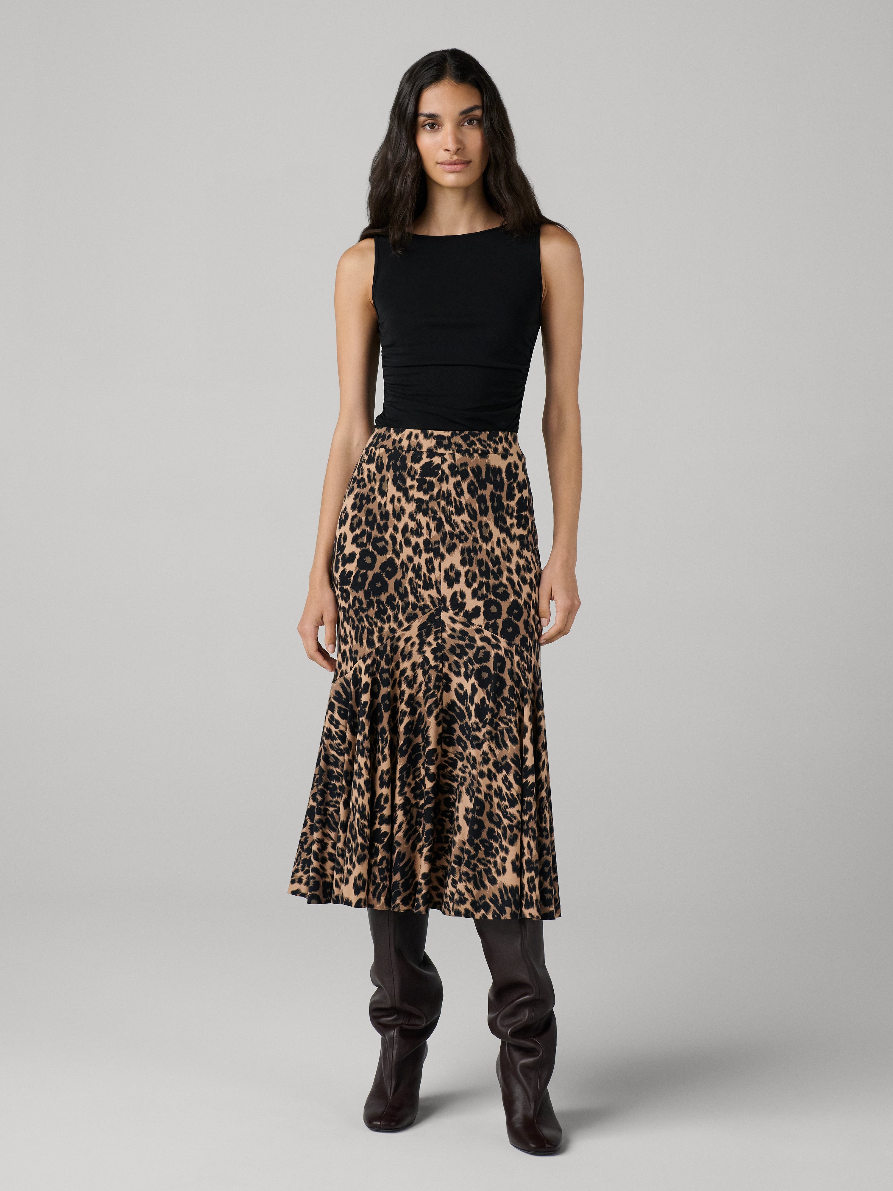 The Edith Skirt moves effortlessly with a lightweight, ultra-smooth finish and tailored pleats. - Mid to high rise - Elastic waist - Pleats along hem - Pairs perfectly with our Cici Top Size & Fit Beatriz is 5'11" and is wearing a size XS Fabric & Care Lightweight with a fluid drape and softly structured warmth. 72% Lyocell 28% Wool Dry Clean Only