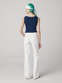 Crafted from our new stretchy denim, the Gia Jeans are a classic white denim piece, balancing comfort and style. - High waisted fit - Braided waist - Folded hem - Straight legs - Ankle length Size & Fit Afra is 5'9" and is wearing a size 2 Fabric & Care A soft, natural fabric with a structured fit and slight stretch. 98% Cotton 2% Spandex