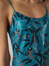 Wrapped in radiant sequins, the Jane Slip Dress ensures the spotlight is always on you. - Thin straps - Scoop neck - Back center slit - Midi length - Slip silhouette - All over sequins Size & Fit Beatriz is 5'11" and is wearing a size 2 Fabric & Care Lightweight mesh provides stretch and movement, textured with sewn in sequins. 95% Polyester 5% Spandex Dry Clean Only