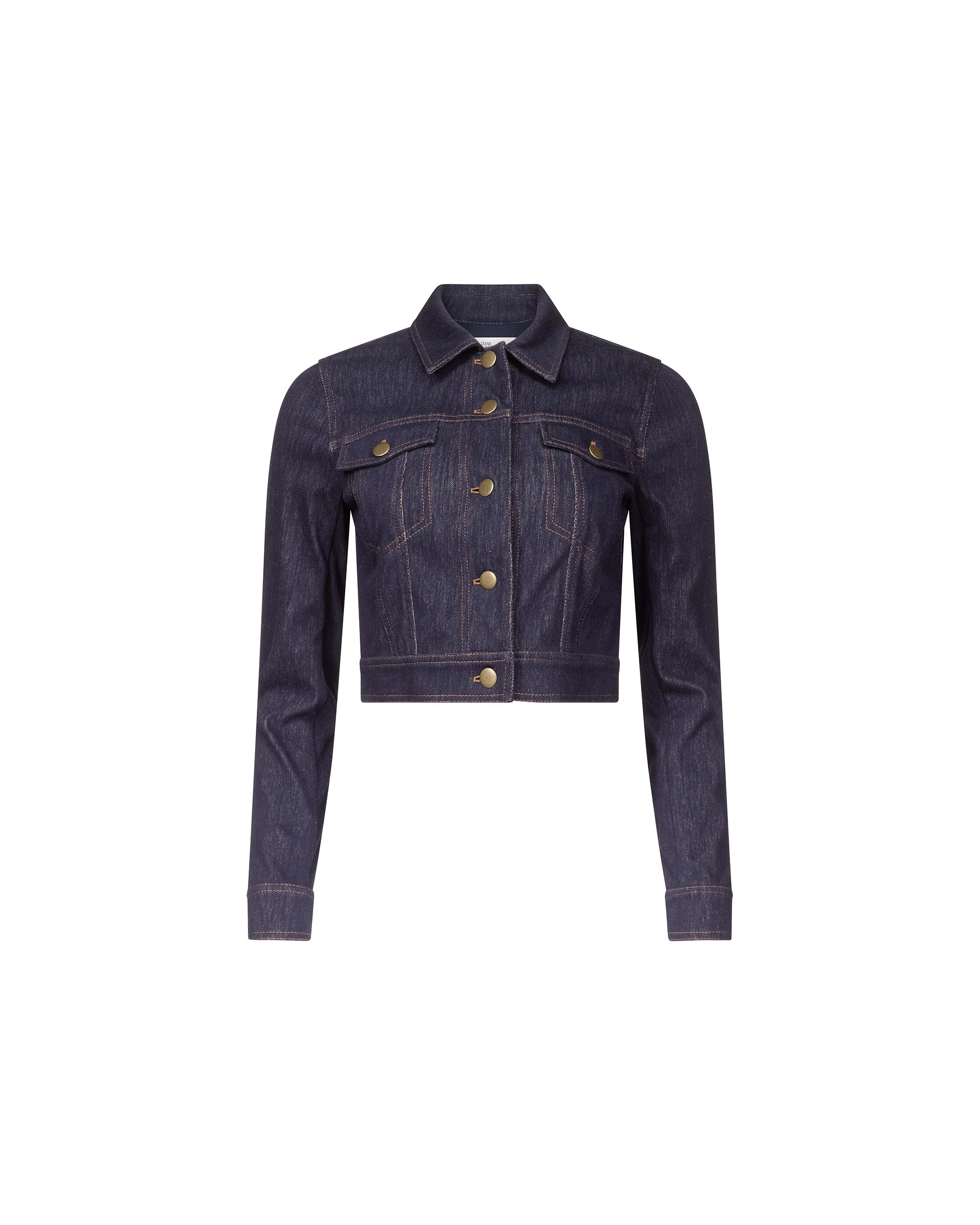 The Kiara Jacket, crafted from versatile knit denim, is your new go-to piece with its perfectly flirty cropped fit. - Collared neckline - Long sleeves - Cropped length - True pockets - Button closure Size & Fit Sasha is 5'10" and is wearing a size XS Fabric & Care A soft, natural fabric with a structured fit and slight stretch. 96% Cotton 4% Spandex