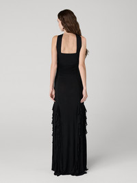 The Mira Dress with its floor-length silhouette exudes timeless sophistication, perfect for formal events or evening occasions. - Strapless - Choker neck detail - Square back - Maxi length - Halter collar - Ruffle detailing on skirt Size & Fit Maia is 5'10" and is wearing a size XS Fabric & Care An ultra-light and stretchy evolution of our jersey that creates soft, slinky silhouettes. 100% Viscose