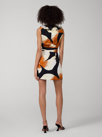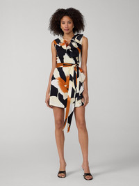 The Roxy Dress is a sleeveless floral mini, ideal for warm-weather days. - V neckline - Sleeveless - Ruffle neckline - Wrap tie - True mini length Size & Fit Drew is 5'10" and is wearing a size XS Fabric & Care Light and effortless, this crepe de chine has a soft feel and a romantic drape. 40% Viscose 60% Ecovero / 72% Cotton 28% Silk Dry Clean Only