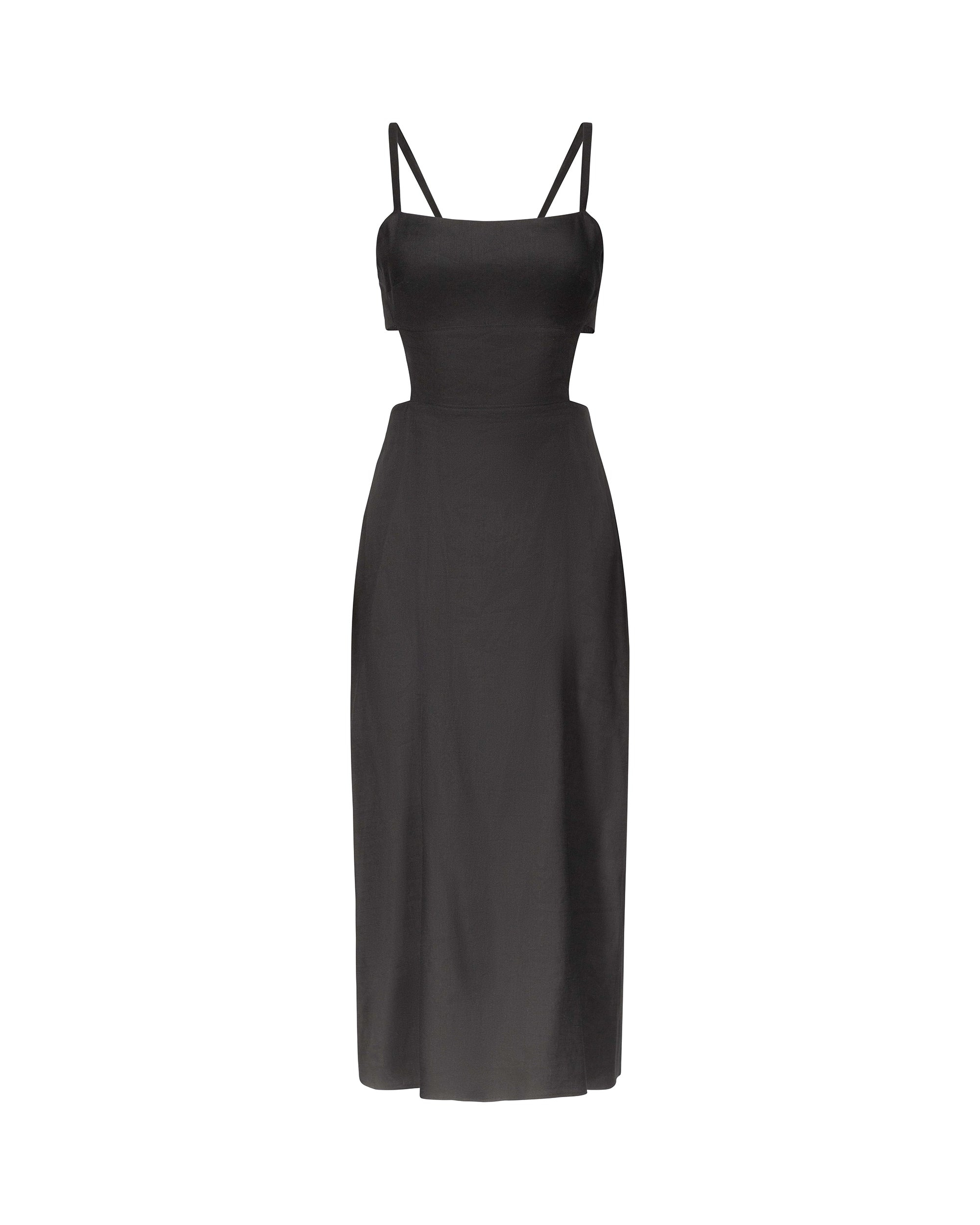 Made from a soft and stretchy linen, the Zoe Dress is a unique LBD with a comfortable feel. - Stretch Linen - Adjustable straps - Cinched waist with cut-out detail - Open lower back with tie detail - Smocked back - Midi length Size & Fit Afra is 5'9" and is wearing a size XS Fabric & Care Stretch Linen, our new natural fabric, has a light, luxurious feel, and a subtly structured look. 55% Linen 43% Tencel Lyocell 2% Spandexx
